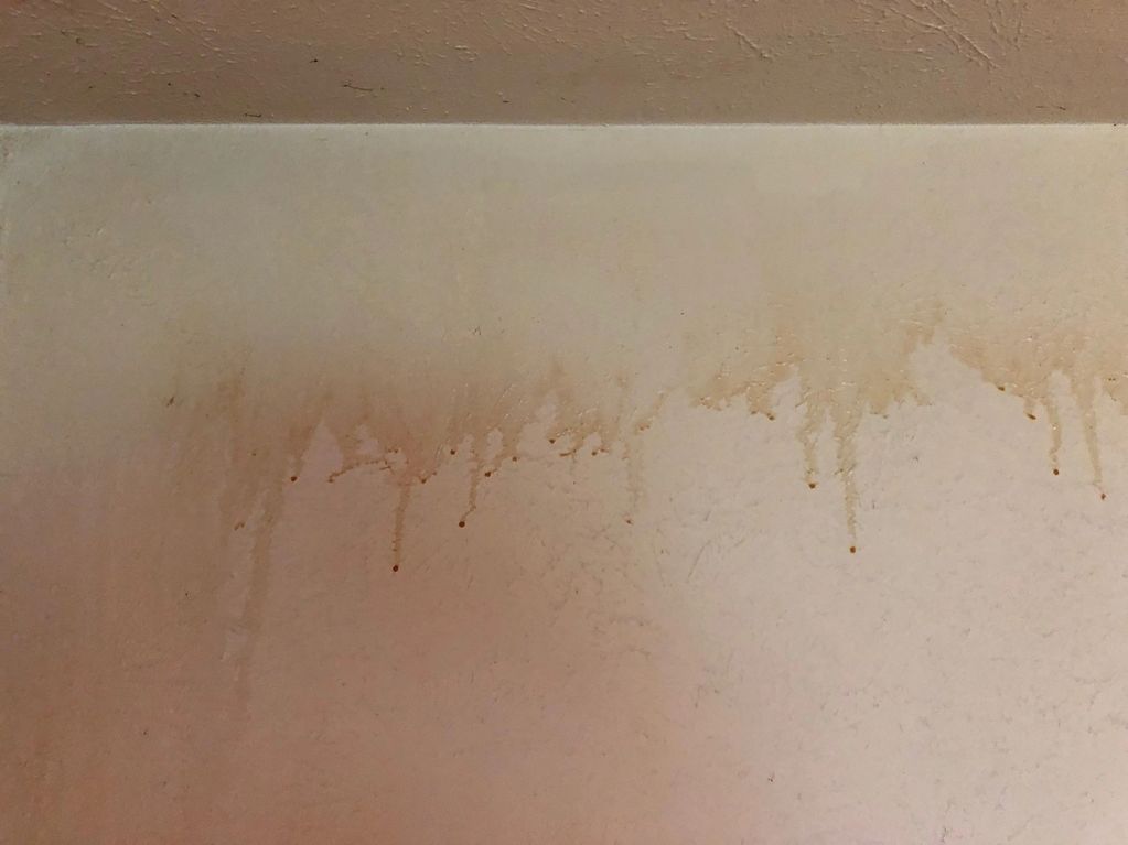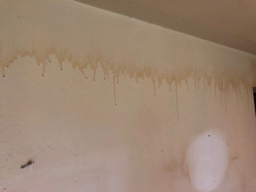 Removing the nicotine from the walls. The white spot is where a picture hung.